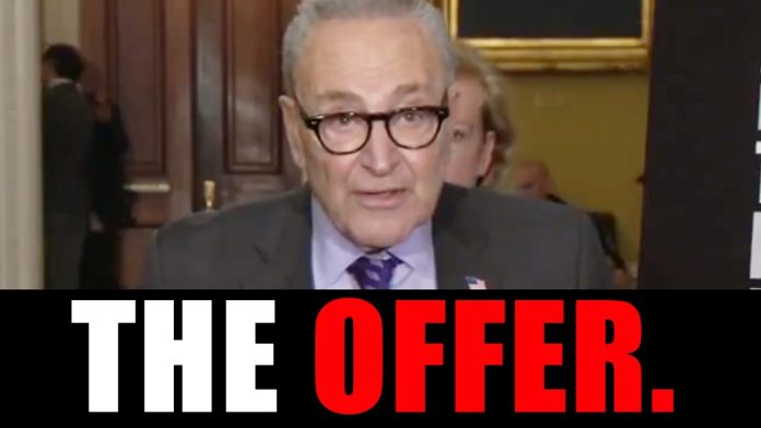 news1todaysnewswinner CHUCK SCHUMER OFFERS A DEAL. By USEagleTimes.com - October 30, 2025 0 4 FacebookTwitterPinterestWhatsApp IMAGE ABOVE FROM VIDEO BELOW TOP COMMENTS FROM VIDEO BELOW No money for illegal immigrants….period!!! Schumer is simply a blithering moron. THE SHUTDOWN IS HIS FAULT!!!!!!